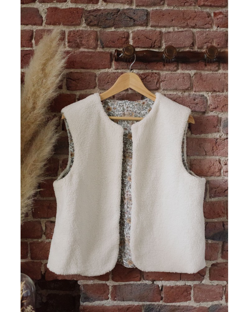 Après un temps de découverte de la machine, vous suivrez pas à pas les étapes pour réaliser un gilet de berger sans manches réversible avec poches.
