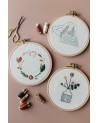 Vous repartirez avec le motif format carte, le tambour et la toile brodée, une aiguille à broder et du fil pour terminer la création chez vous.